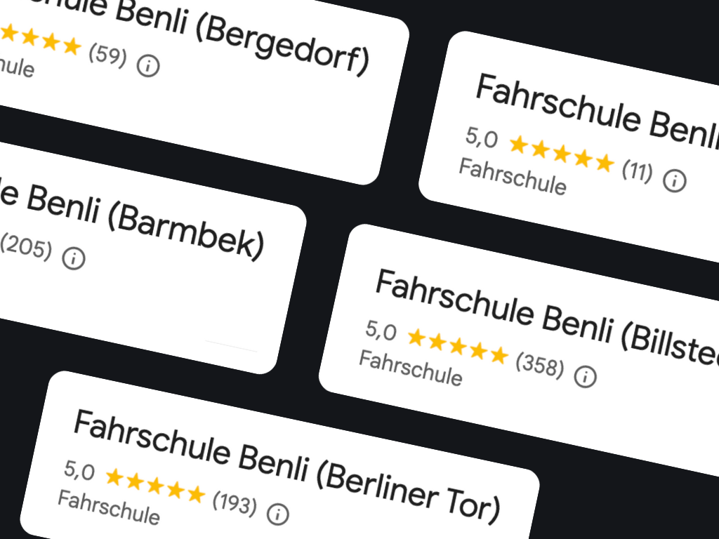 Eine sehr innovative und moderne Fahrschule mit ausgezeichneten Fahrlehrern. Ich kann jedem, der seinen Führerschein machen möchte, die Fahrschule Benli empfehlen. Ein dickes Dankeschön an meinen Fahrlehrer Sultan, durch ihn habe ich direkt die praktische Prüfung bestanden!!